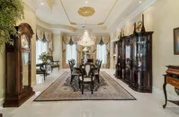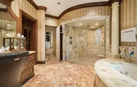 | The main house features over 11,000 square feet of living space with 5 bedrooms, 7 full and 2 half bathrooms, formal living & dining rooms, kitchen, breakfast room, family room with wet bar, paneled office, gym/rec room with 2nd kitchen, massive atrium and more. The semi-detached 11,000 square foot garage can fit up to 55 cars! American former professional boxer & entrepreneur, George Foreman, his selling his 29+ acre Texas estate for $9.5 million. Located at 29310 Commons Way in Huffman, Texas, it features a main house and large semi-detached garage. |