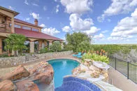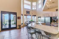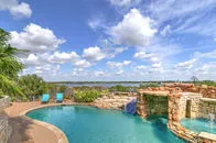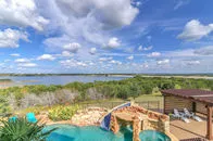 | SOLD on Sept. 15, 2017 An entertainers paradise overlooking lake, sprawling on over 7 acres of manicured live oaks. This 3-3.5-5 Mediterranean boasts 22' foot ceilings, gourmet kitchen, open space living and views from every angle. Master has fireplace, and his and hers custom walk in closets. Game room with kitchen, wet bar and bath. Salt water pool with slide, attached spa and pool bar all overlooking the lake. Property has separate 3-2 home and guest cottage. |