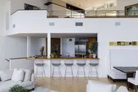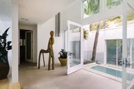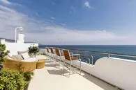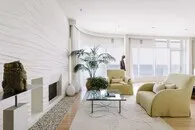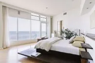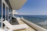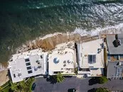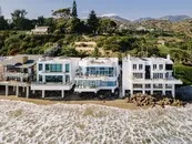 | Dramatic architectural achievement located in the highly desirable and private, 24-hour guard gated community of Malibu Cove Colony. With wall-to-wall and ceiling-to-floor windows, multiple generous-sized decks, and 60 feet of beach frontage, enjoy sweeping panoramic views of the ocean and coastline from Point Dume to Palos Verdes from various vantage points. Exceptionally high ceilings, organic curves, and flooding natural light coming from multiple skylights emphasize the sculptural beauty and elegance of each room. From the inviting foyer, you step into the extraordinary main living space which consists of family, living, dining, and kitchen areas all surrounded by walls of glass that look out onto the never-ending Pacific. Beyond the interior spaces, the full-width oceanfront balcony lends the perfect setting for intimate gatherings and al fresco dining. Additional features include a sleek fireplace, a functional kitchen with quality stainless-steel appliances, bar seating, and a dining area with built-in bench seating. Upstairs, a cozy loft area doubles as an office with a plethora of storage space and a beautiful fireplace. From the large balcony off the loft, exterior stairs lead you to a magical rooftop deck ideal for sunbathing and relaxing. Descending to the lower level, you'll find three generous-sized bedrooms, two of which have gorgeous ocean views and all of which have en-suite bathrooms. The primary retreat, tranquil and elegant, features a sitting area with a fireplace built into the mesmerizing textured walls, a marble and limestone spa-style bathroom with a spectacular ocean-view bathtub, a generous walk-in closet, and a large balcony with scenic panoramas. Set at the end of the prestigious guard-gated street, this remarkable Malibu retreat offers sophisticated living at its finest in the most private and serene setting. |