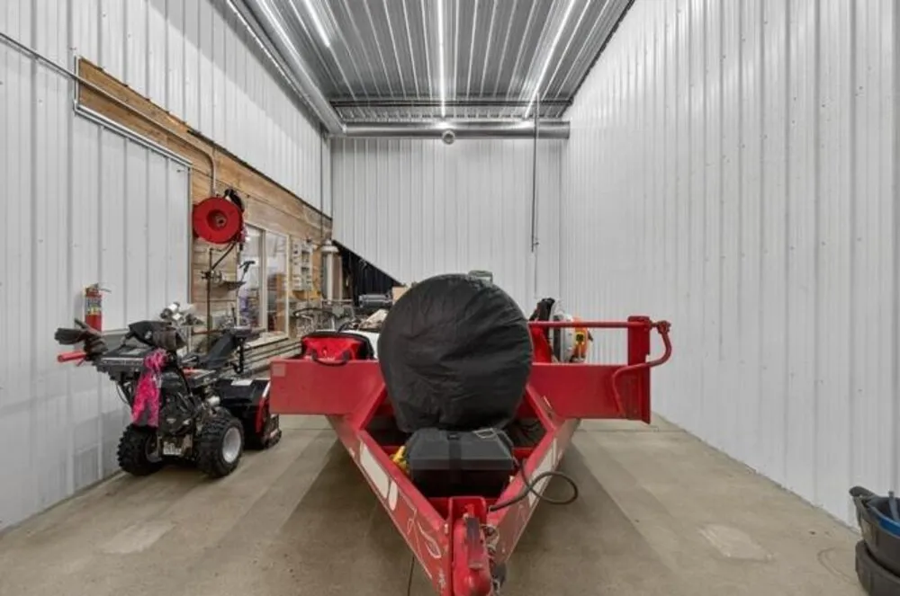 | Car Lifts included in this sale! Luxury Barndominium on 2 Acres with Commercial-Grade Pole Barn. Completed just four years ago, this exceptional barndominium sits on a 2-acre lot with city water and sewer, offering 2,500 sq ft of upscale living space paired with an impressive 11,000 sq ft fully finished pole barn. A rare blend of luxury living, expansive functional space, and outstanding business or hobby potential. The pole barn features 16-foot ceilings, three 14-foot exterior doors, a 10,000-lb two-post car lift, and over 2,700 sq ft of polished concrete floors—ideal for automotive enthusiasts, contractors, collectors, or commercial use. Approximately 2,400 sq ft currently carries a light commercial variance with signage; a new owner must reapply through Allen County to continue commercial use. Additional features include a second-story man cave overlooking the shop, a finished half bath, washer and dryer, a dedicated mechanical room with built-in air compressor and plumbed air drops, and 400-amp electrical service. Both the home and barn are constructed with 2×6 walls, high/low-density spray foam insulation, and radiant floor heating powered by a shared high-efficiency two-zone boiler system. This system also provides on-demand domestic hot water with a recirculation line for near-instant hot water throughout the property. The home offers 10-foot ceilings, solid surface flooring, premium countertops, and high-end appliances. Comfort is enhanced by a two-zone Carrier AC system and Aprilaire steam humidifier. Additional highlights include a natural gas fireplace, 8-foot Andersen 400 Series windows and doors, remote-controlled blinds, and automated Lutron lighting. The gourmet kitchen features a large granite island, premium appliances, and a pot filler. The home includes three bedrooms and two full baths, including a primary suite with a walk-in tiled shower. Outdoor living shines with a large covered porch, built-in gas grill, and custom concrete countertop. The backyard retreat includes a heated 18’ x 36’ in-ground concrete pool with tanning ledge, slide, water features, and automated safety cover. Additional features include whole-property Wi-Fi, two automated gated driveways, a 32+ zone security system, and a fully climate-controlled barn. This one-of-a-kind property must be seen to truly appreciate its scale, craftsmanship, and possibilities. |