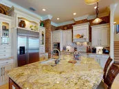 | Marco Island Waterfront Beautiful Classic Custom Home. Desirable location with Gulf Access about 1 mile to Residents Beach. Everything you need for waterfront living inside and outside! Dock w/12,000 lb Lift, plus 2 jet ski lifts. Heated Pool and Spa, with equipped outdoor kitchen. Spacious 4 bedrooms plus den with 4.5 bathrooms & 3 car garage. Plenty of living space over 3100 sq. ft under air. Two story home, on 1st floor, 2 bed/2.5 baths and den. The Master Bedroom has an en suite bath with dual sinks, tub, walk in shower, california closets. The amazing gourmet kitchen has granite countertops, Monogram stainless appliances, pot filler, butlers bar w/wine cooler, with breakfast bar. and custom banquette seating, Also a living room, dining room, family room, crown moldings throughout, tile flooring, carpet bedrooms. Upstairs 2 bed/2 bath w/family room, also a wet bar with a microwave and refrigerator plus sliders out to 2nd story lanai. Additionally window treatments including Plantation Shutters, Hunter Douglas Silhouette blinds. Pavers surround entire pool deck, paver driveway. Sliding glass doors pocket onto Fully extended screened in lanai. Electric Shutters on Lanai, Manual Shutters all other openings. Roof 2019, Seawall 2001. Security system. Built by prestigious Sunset Builders. |