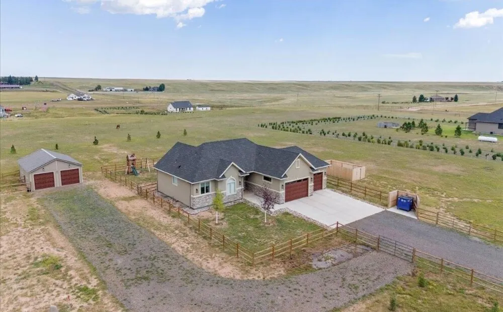 | Fantastic Opportunity! Welcome home to Yellowstone Estates, one of North Cheyenne’s most desirable acreage neighborhoods! This stunning 2021 built home sits on 4.91 beautiful acres, offering the perfect blend of modern comfort and Wyoming charm—complete with wide-open views and fully fenced land ready for horses or any outdoor lifestyle you can imagine. Step inside to discover high-quality construction throughout, from the finished basement with generous-sized bedrooms to the beautifully designed kitchen and bathrooms showcasing modern finishes and attention to detail. The heated, insulated, and fully finished main garage provides year-round comfort and cleanliness, while the insulated outbuilding offers excellent extra storage, workshop, or car space. Enjoy peace of mind with a Generac whole-home generator, enhanced outdoor lighting, and stylish modern interior upgrades. Just minutes north of town, this property offers the space and serenity of country living without sacrificing convenience. With 4.91 acres of open beauty, quality craftsmanship, and endless versatility, this one truly has it all—schedule your private showing today! |