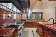 | Be transported to another world! Let everyday cares remain outside the entry gates as you give in to the splendor and tranquility of the ultra private garden courtyards and soothing sound of the fountains. Arched loggias/arcades surround both courtyards, providing alfresco dining, cooking, & outdoor living enjoyment. The entire concept is a living work of art. Unparalleled craftsmanship, from hand carved millwork and coffered ceilings to bookend matched marble floors, never fail to amaze. A chef's kitchen as beautiful as it is functional, is the top of a long list of everyday luxuries. Inspired by the Getty Villa outside of Rome, the enduring architecture, & quality of construction (8'' thick masonry walls) offer endless appeal, as is always true with a finely designed work of art. Whether looking for a private compound, corporate hideaway resort, and or Family Office, Villa Osso Negro (Home of the Black Bear) is sure to impress. La Posta Vecchia-inspired estate with two courtyards Exquisite, imported materials and artisan details Hand-tiled saltwater swimming pool Gated property in Paradise Valley with an 8 car garage and RV parking. |