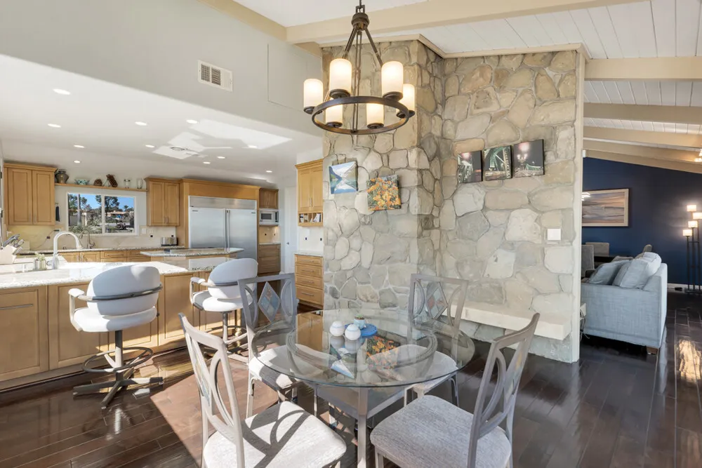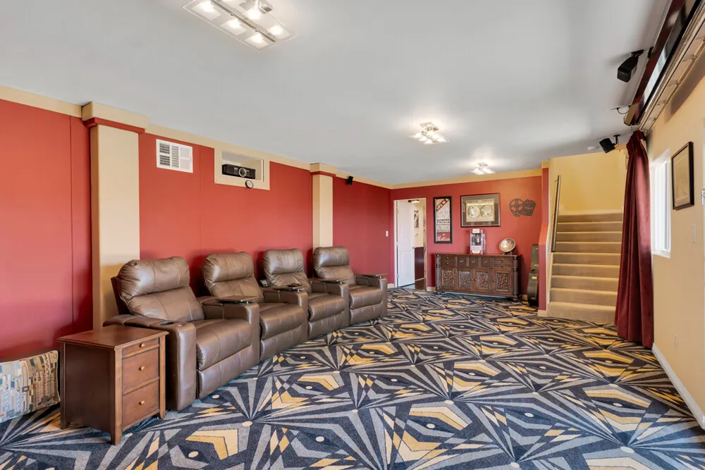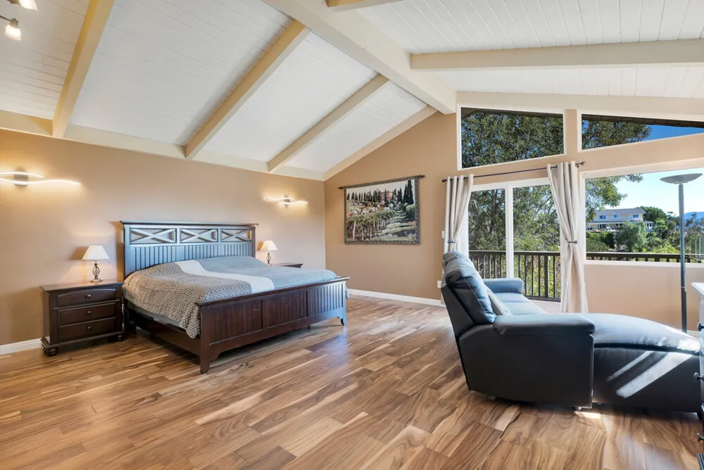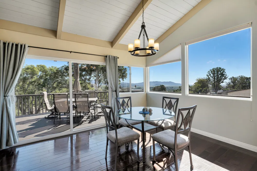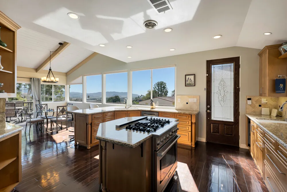 | Perched in the prestigious Las Posas Estates, this remarkable hillside residence captures sweeping views of the city, mountains, and ocean—creating an entertainer’s paradise in an atmosphere of tranquility and sophistication. Nestled on a quiet cul-de-sac street, this custom-designed home seamlessly blends refined elegance with effortless comfort. The main level features three spacious en-suite bedrooms, with the primary bedroom designed to take advantage of the home’s stunning vistas. The gourmet kitchen is a culinary dream, showcasing a commercial-sized refrigerator and freezer, professional-grade gas range, walk-in pantry, granite countertops, and an inviting eat-at counter. Morning light pours through expansive windows, illuminating the open-concept living and dining areas that flow effortlessly to wrap-around decks—ideal for indoor-outdoor entertaining. The primary suite is a serene retreat with vaulted wood beam ceilings and dramatic picture windows framing the breathtaking views. Downstairs, a stylish speakeasy bar and bonus room with copper ceilings set the stage for memorable gatherings, while sliding glass doors open to a spacious patio complete with a firepit and outdoor lounge. Downstairs also included a fourth bedroom or office plus a ¾ bath and a powder room off the entertaining area. Film enthusiasts will enjoy the dedicated media room with cozy, oversized theater seating, a 96” screen, and projector. For car collectors and hobbyists, the property offers exceptional amenities—including an outbuilding with car lifts capable of accommodating up to six vehicles in addition to a generous three-car garage, separate storage/workroom, and a large gardening workshop. Meticulously maintained and thoughtfully upgraded, the home features details such as recirculating hot water, custom blinds, gutter guards, and paver driveways and patios. The circular driveway provides a grand entrance, complemented by space for RV or boat parking. Coming in at just over an acre, the property can accommodate extra cars, toys, and fun. Just minutes from Camarillo’s premier golf clubs and conveniently located between Santa Barbara and Los Angeles, this one-of-a-kind estate offers unparalleled privacy, craftsmanship, and comfort—with views that inspire, and spaces that invite you to live beautifully. |